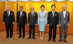 左から米倉会長、フン・セン首相、テイン・セイン大統領、インラック首相、ズン首相、岡村会頭