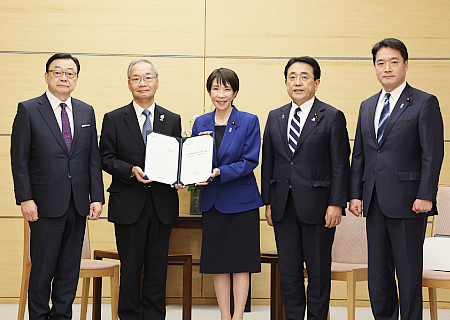 第3回AZEC首脳会合(10月26日、クアラルンプール)に先立ち、24日、原典之審議員会副議長、木藤俊一同副議長は、高市早苗内閣総理大臣に「AZEC構想の推進に関する第二次提言」(以下、第二次提言)を建議し、提言実現に向け首相のリーダーシップを求めた。