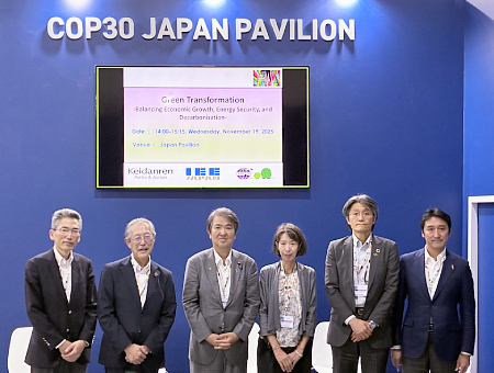 11月10~22日、ブラジル・ベレンで、国連気候変動枠組条約第30回締約国会議(COP30)が開催された。経団連からは、環境委員会の手塚宏之国際環境戦略ワーキンググループ座長、饗場崇夫地球温暖化対策ワーキンググループ副座長らが参加し、日本経済界のグリーントランスフォーメーション(GX)や気候変動対策に関する取り組みについて発信するとともに、日本政府代表団や各国経済団体等と意見交換を重ねた。