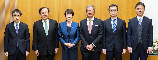 高市首相(右から4人目)、古田委員(同3人目)、髙橋代理委員(同2人目)、引間代理委員(同1人目)