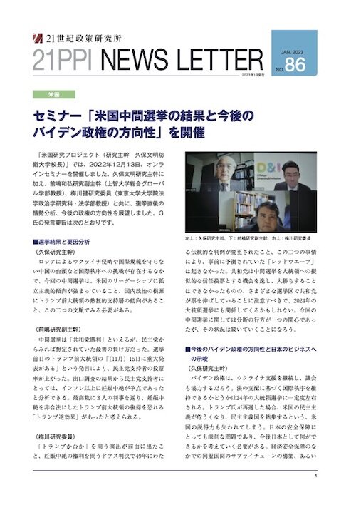 No.86 セミナー「米国中間選挙の結果と今後のバイデン政権の方向性」を開催