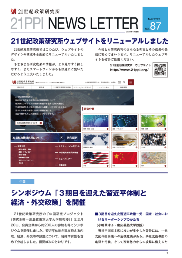 No.87 21世紀政策研究所ウェブサイトをリニューアルしました
