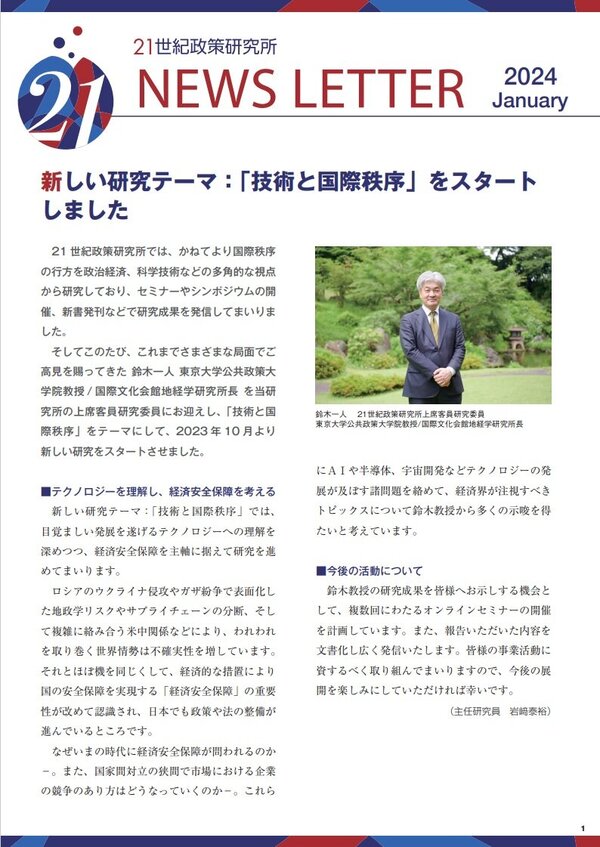 2024年1月号 新しい研究テーマ:「技術と国際秩序」をスタート しました