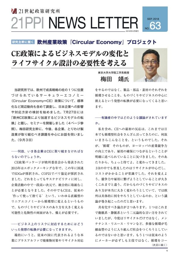 No.63 研究主幹に聞く「欧州産業政策『Circular Economy』」プロジェクト