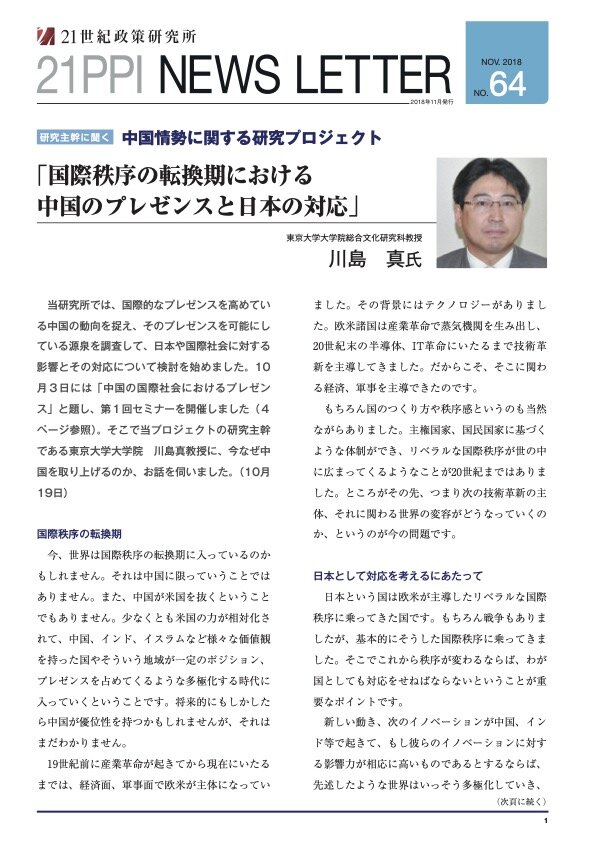 No.64 研究主幹に聞く「中国情勢に関する研究プロジェクト」プロジェクト