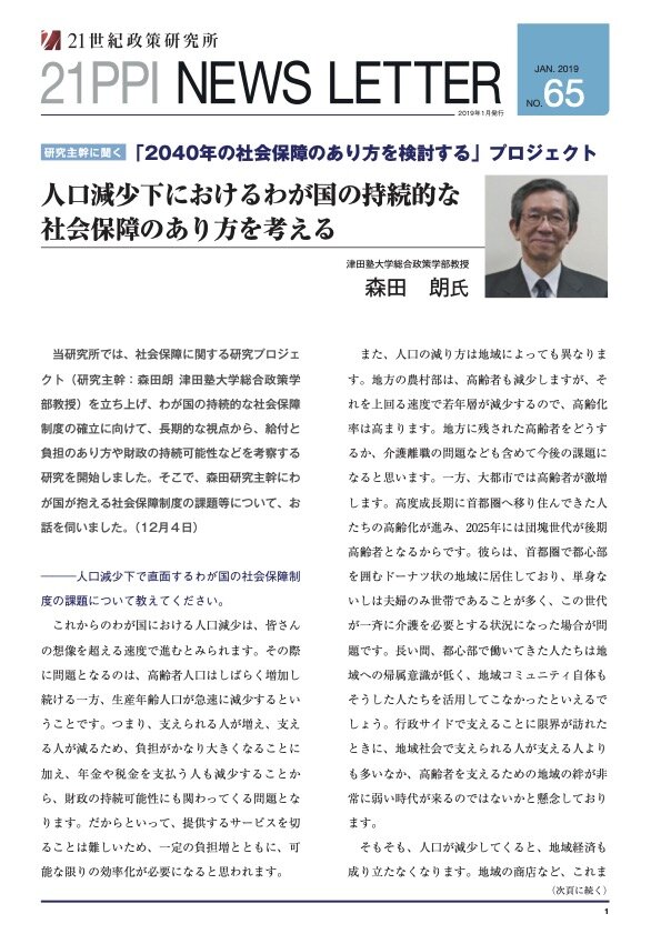 No.65 研究主幹に聞く「2040年の社会保障のあり方を検討する」プロジェクト