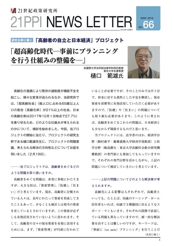 No.66 研究主幹に聞く「高齢者の自立と日本経済」プロジェクト