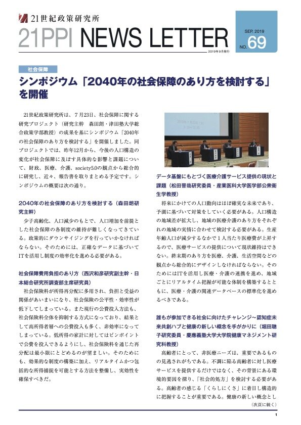 No.69 シンポジウム「2040年の社会保障のあり方を検討する」を開催