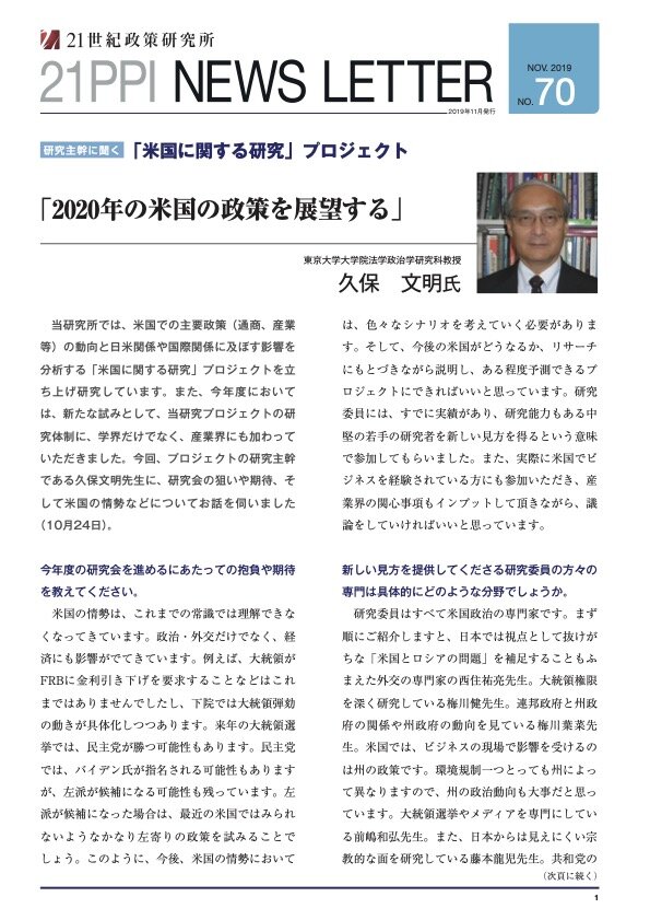 No.70 研究主幹に聞く「米国に関する研究」プロジェクト