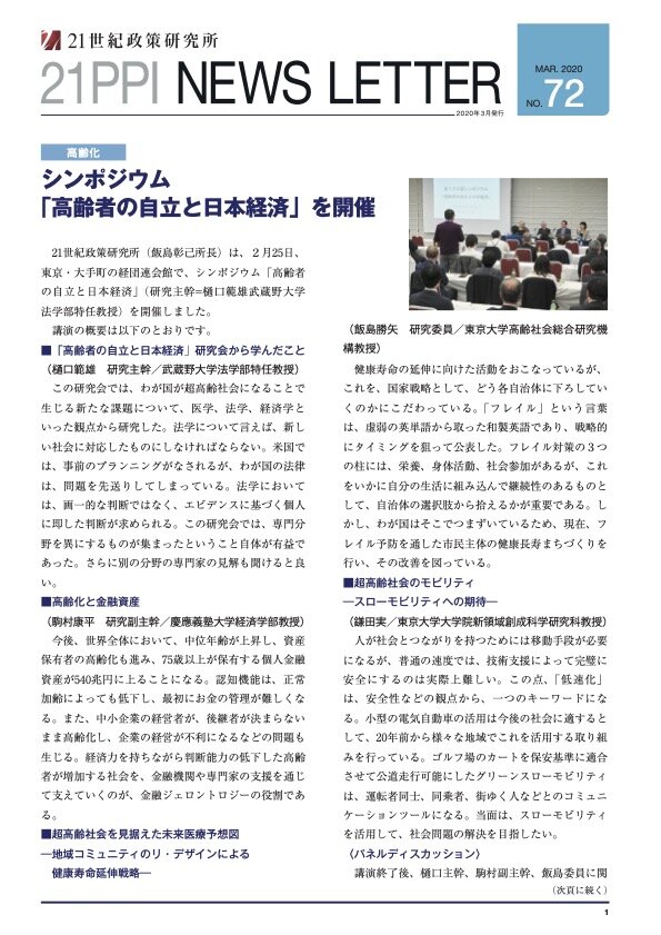 No.72 シンポジウム「高齢者の自立と日本経済」を開催