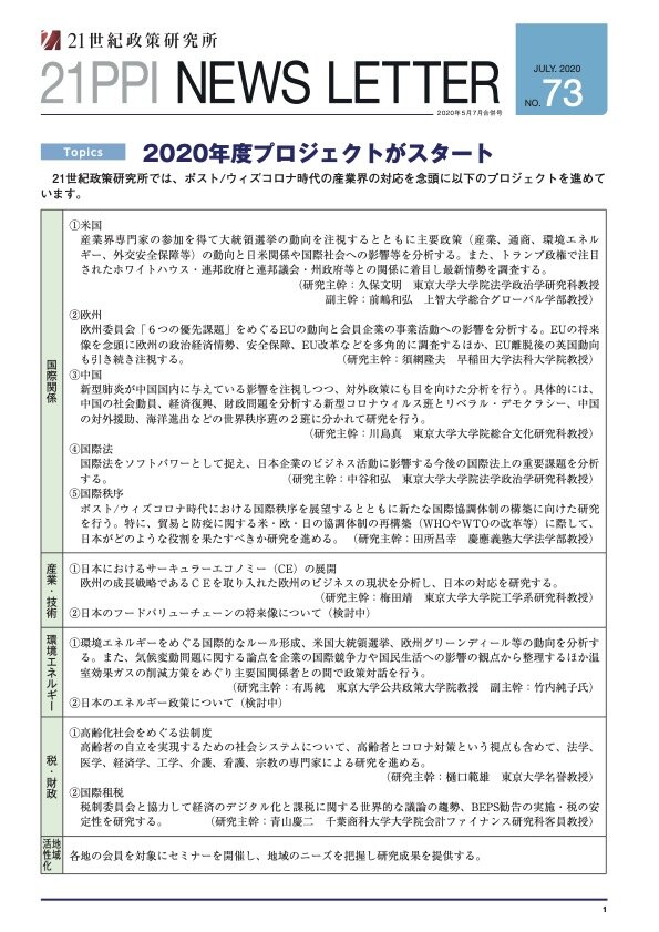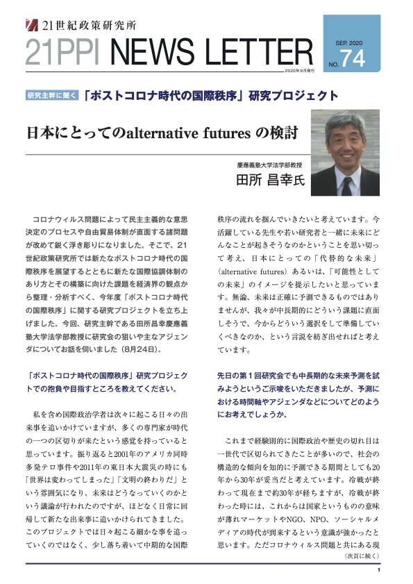 No.74 研究主幹に聞く「ポストコロナ時代の国際秩序」研究プロジェクト