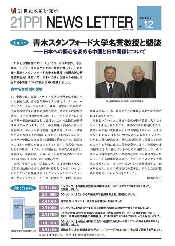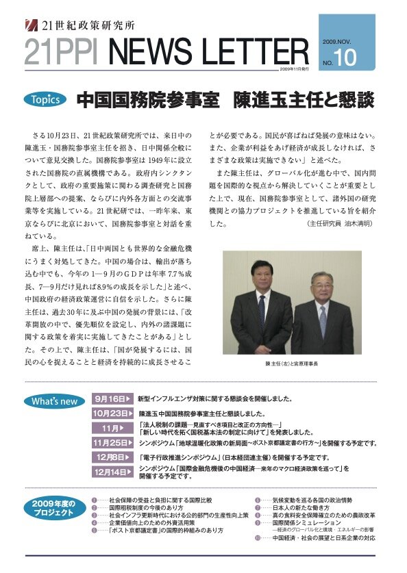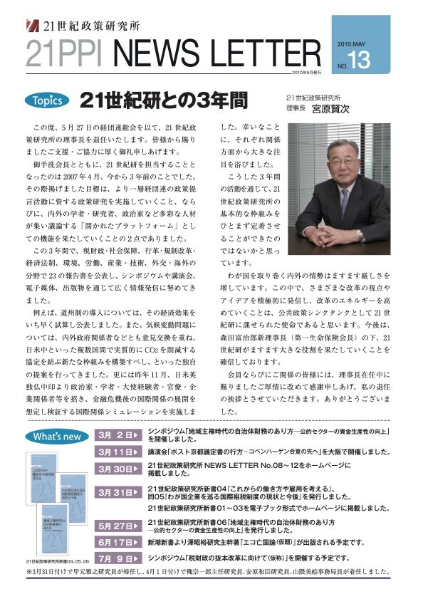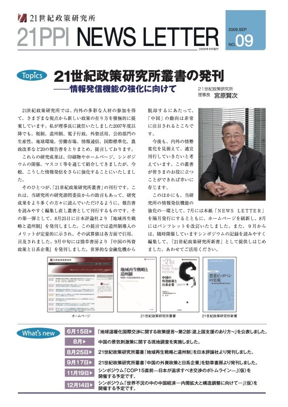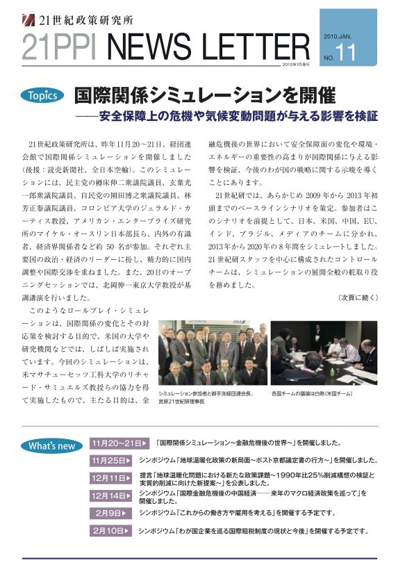 経団連総合政策研究所で行っている各種の活動の概要をとりまとめ、ニュースレターとして発刊しています。報告書の内容、シンポジウムやセミナーの模様などを端的に理解するものとしてご利用いただけます。