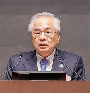 国内外でさまざまな課題が山積するなか、持続可能な経済社会の実現に向け、日本の経済界の旗振り役として、経団連の役割は大きいと指摘。執行部の力強いリーダーシップの発揮と取り組みの一層の強化を期待すると述べた。