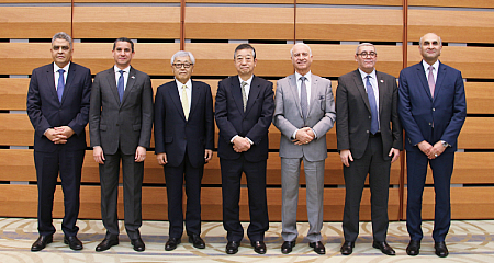 経団連からは大橋委員長(写真中央)をはじめ、北部アフリカ地域に関心を持つ企業関係者ら約40人が、アフリカ側からは、モロッコ、チュニジア、エジプト、モーリタニア、リビアの大使らが参加した。