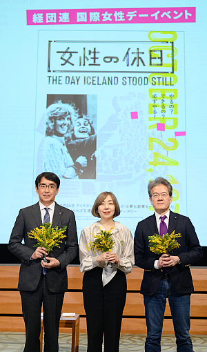 経団連は3月9日、東京・大手町の経団連会館で、国連が定める国際女性デー(毎年3月8日)の記念イベントとして映画「女性の休日」の上映会およびスペシャルトークセッションを開催し、会員から約400人が参加した。